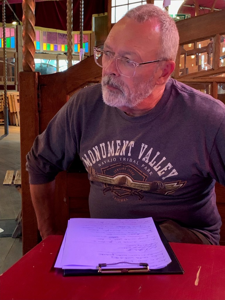 Ik ga even piepen aan de openstaande deur. Een stap naar buiten en de regen spoelt een beetje onzekerheid weg. Iemand is op een laptop aan de slag. Gelijk voel ik een steek jaloersheid.
